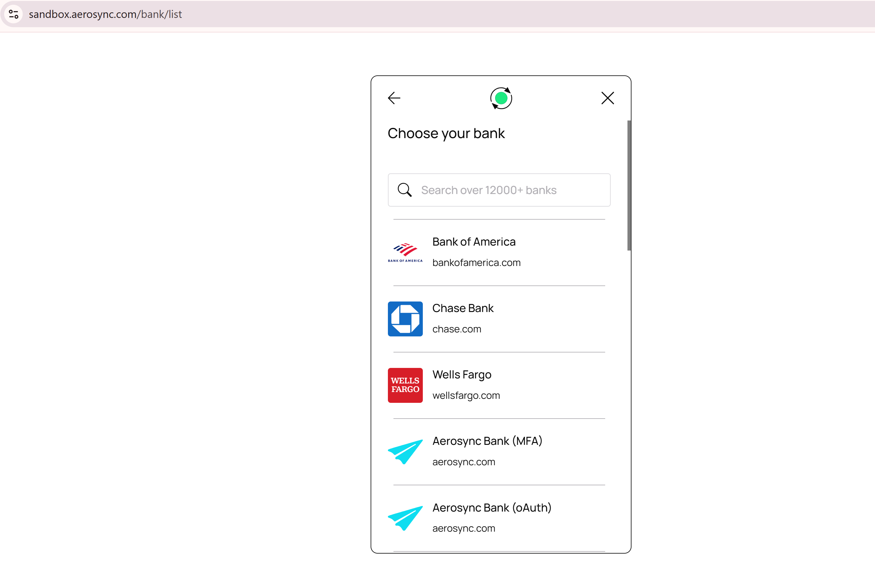 Select the https://sandbox.aerosync.com?token=xxxx/ (Remember to generate a widget token and add it to the URL).