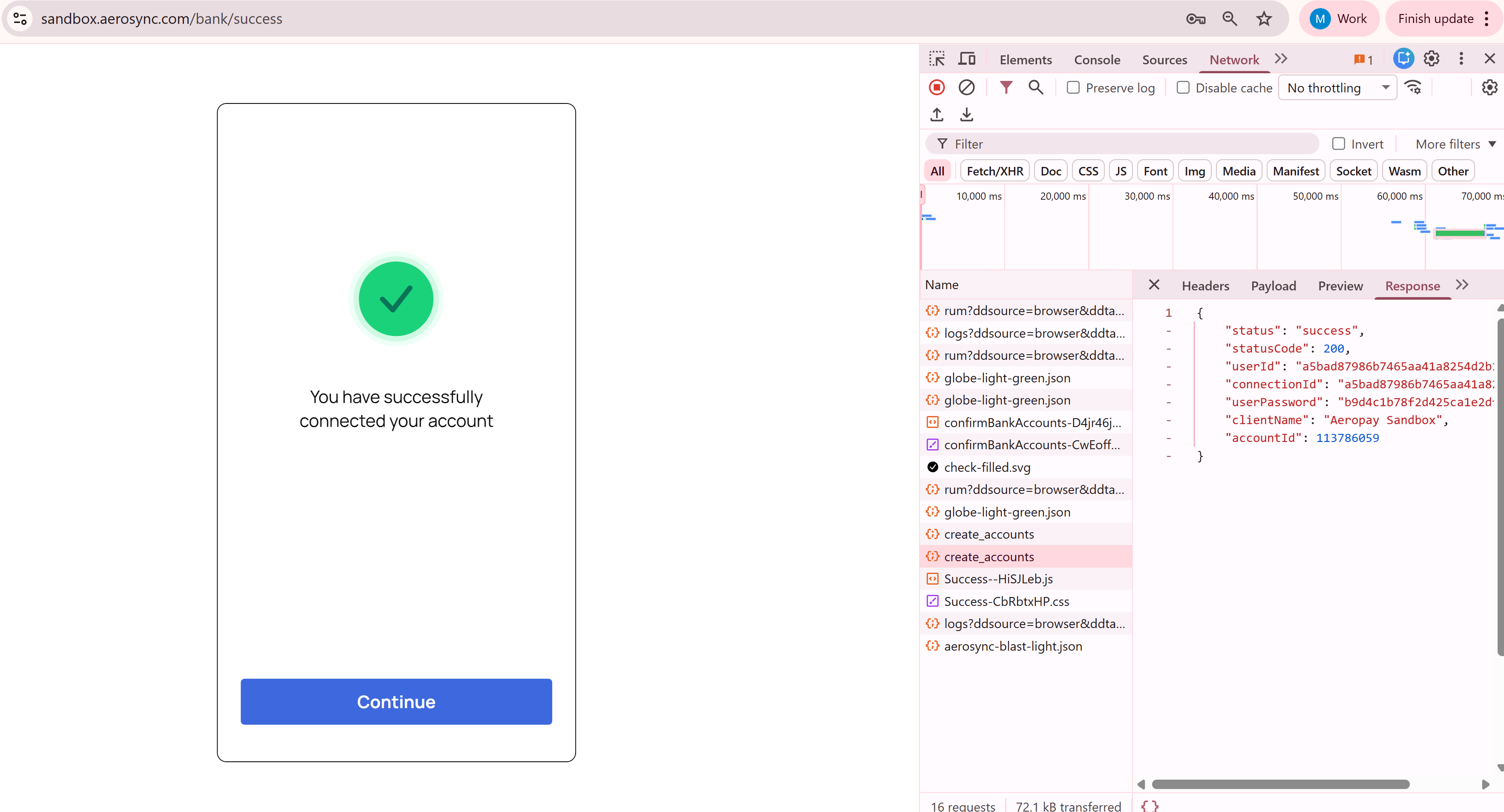 Step 4: Do all the steps of a bank link process and validate the response tab from the create_accounts, there you will find the connection_id.